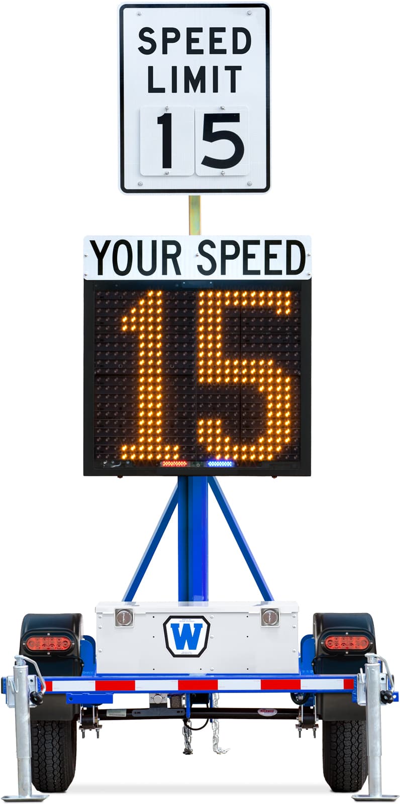 Wanco’s Compact Speed Trailer for Public Safety has the largest portable speed sign available today. Designed for public safety and law enforcement agencies, the giant display shows vehicle speed in bold 26-inch characters, warning motorists to slow down by flashing their excessive speed. The trailer’s see-through design puts pedestrians in view, improving their safety — particularly in high-risk areas. The automated solar charging system provides long run times. For public safety models, Wanco upgrades many standard features for an enhanced degree of durability and reliability.