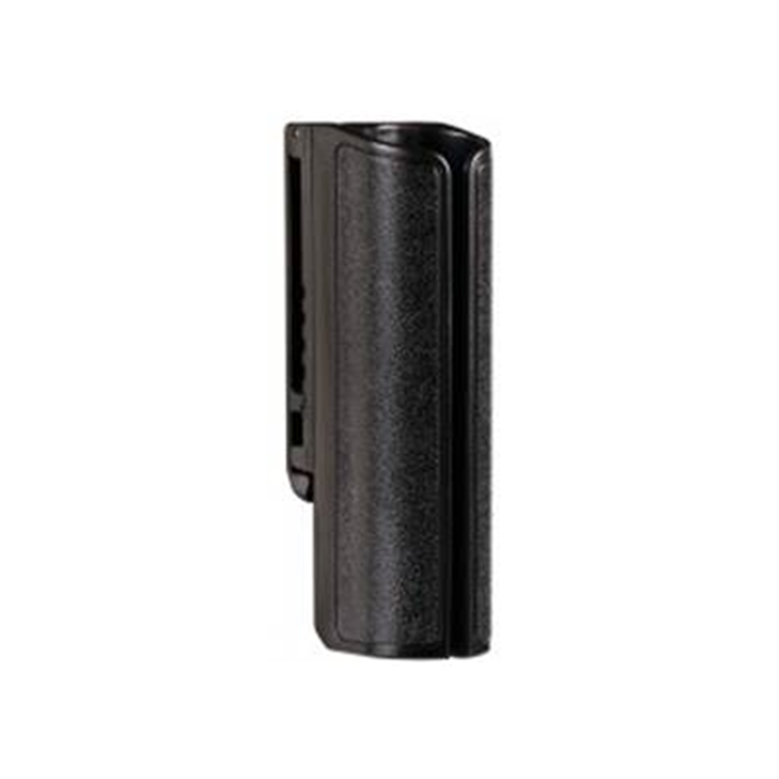 The SideBreak Scabbard holds an F-Series Baton in either the retracted or expanded mode, ready for rapid presentation, while providing secure retention during dynamic confrontations. The design of the scabbard allows the shafts of an expanded Friction Loc Baton to be pulled directly through the side of the case, for instant tactical deployment. The case rotates through 7 click-stop detent positions in a 180 degree arc - so it will not rotate beyond horizontal and compromise the security of the baton - and features an adjustable internal clip that lets you set the amount of baton retention to your preference. This tough, polymer scabbard features our exclusive Snap-Loc belt loop, which attaches anywhere on the belt without having to thread or unthread other duty gear. The belt loop features an indexed slide track and bar that adjusts to fit all common duty belt and dress belt widths, or MOLLE gear.